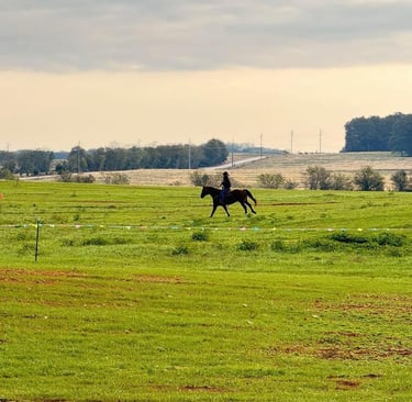 During the warmer months, in addition to the scenic ride through the woods and creek, we offer a special experience for our riders. Take a refreshing break and cool off by wading in the swimming pond with your horse. It's the perfect way to relax and connect with nature while enjoying the company of our majestic horses.